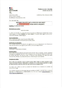 Message d’alerte niveau orange pour vents violents
