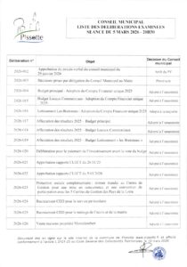 Liste des délibérations du conseil municipal du 5 mars